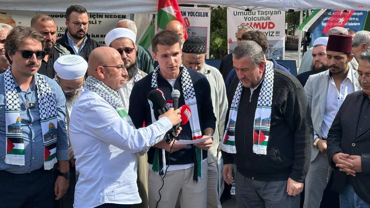 Biz bugün burada hem Gazze’de olanları protesto etmek, herkese yeniden hatırlatmak hem de Gazze için yola çıkan Global Sumud Filotilla Küresel Kararlılık Filosu’na dikkat çekmek amacıyla bulunuyoruz. Sumud filosu Gazze’ye varana, içindeki yolcular sağ salim evlerine dönene ve en önemlisi de bu zulüm ve işgal bitene kadar buradaki varlığımızı sürdürmeye kararlıyız."