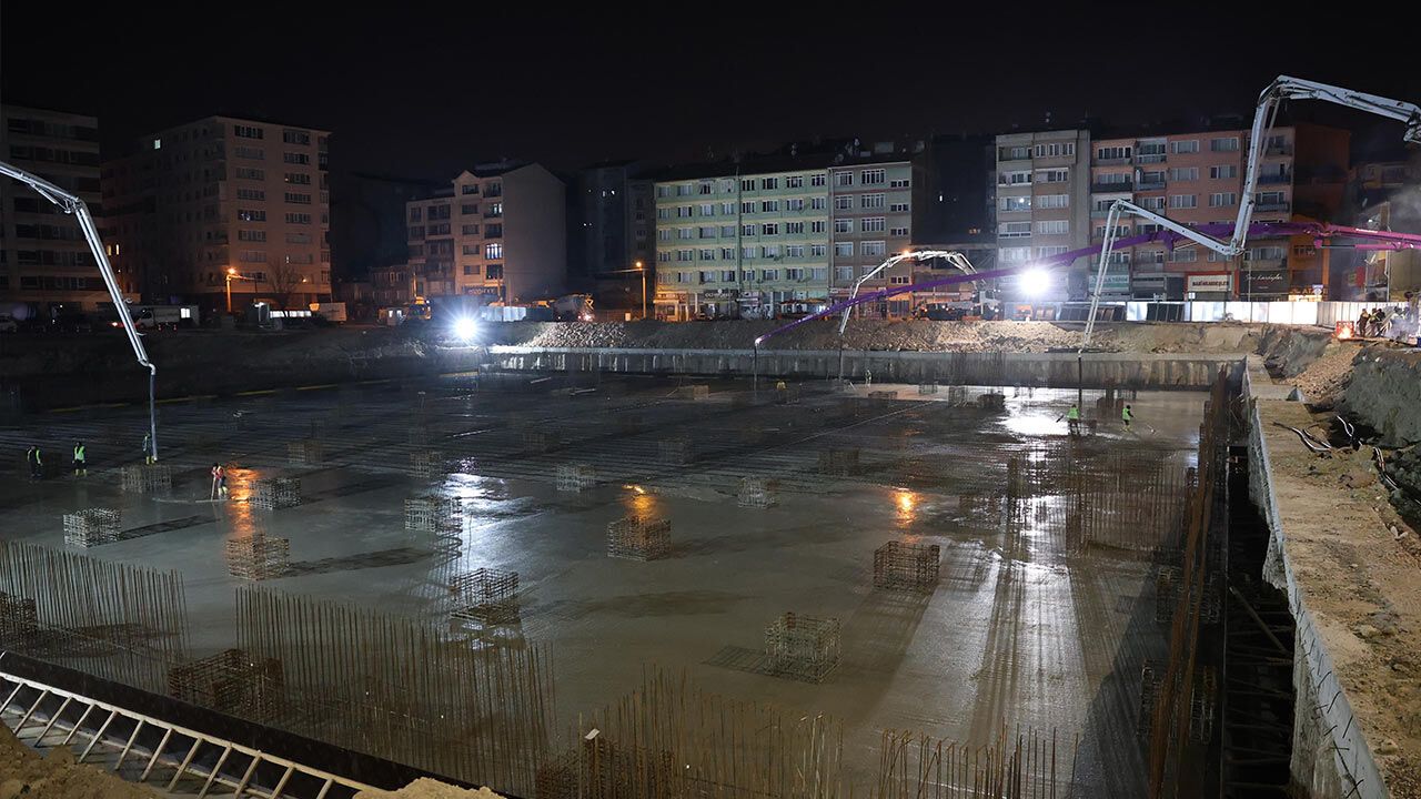 Eskişehir’de yapımı süren Kurtuluş Kapalı Pazar Yeri’nde temel çalışmaları kapsamında geniş çaplı bir beton dökümü gerçekleştirildi. Gece yarısı başlayan çalışmalarda yaklaşık 5 bin metreküp beton döküldü. Çalışmalar sabah saatlerinden itibaren sahada yoğun şekilde devam etti.