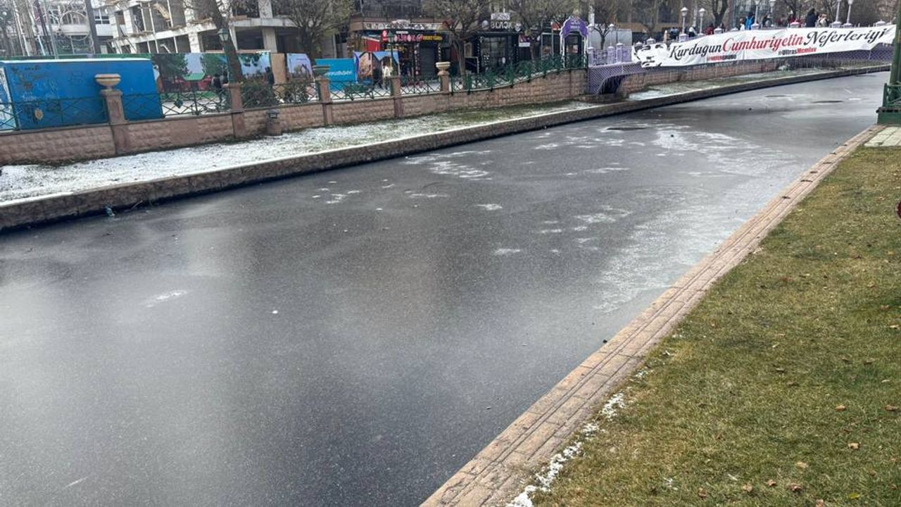 Güneşin ilk ışıklarının çayın üzerine düşmesiyle birlikte ortaya farklı bir manzara çıktı. Bir yanda tamamen buzla kaplanan yüzey, diğer yanda ise akıntının devam ettiği bölümde suyun doğal hareketi dikkat çekti. Bu görüntü, kent merkezinde kışın etkisini açık şekilde gösterdi.