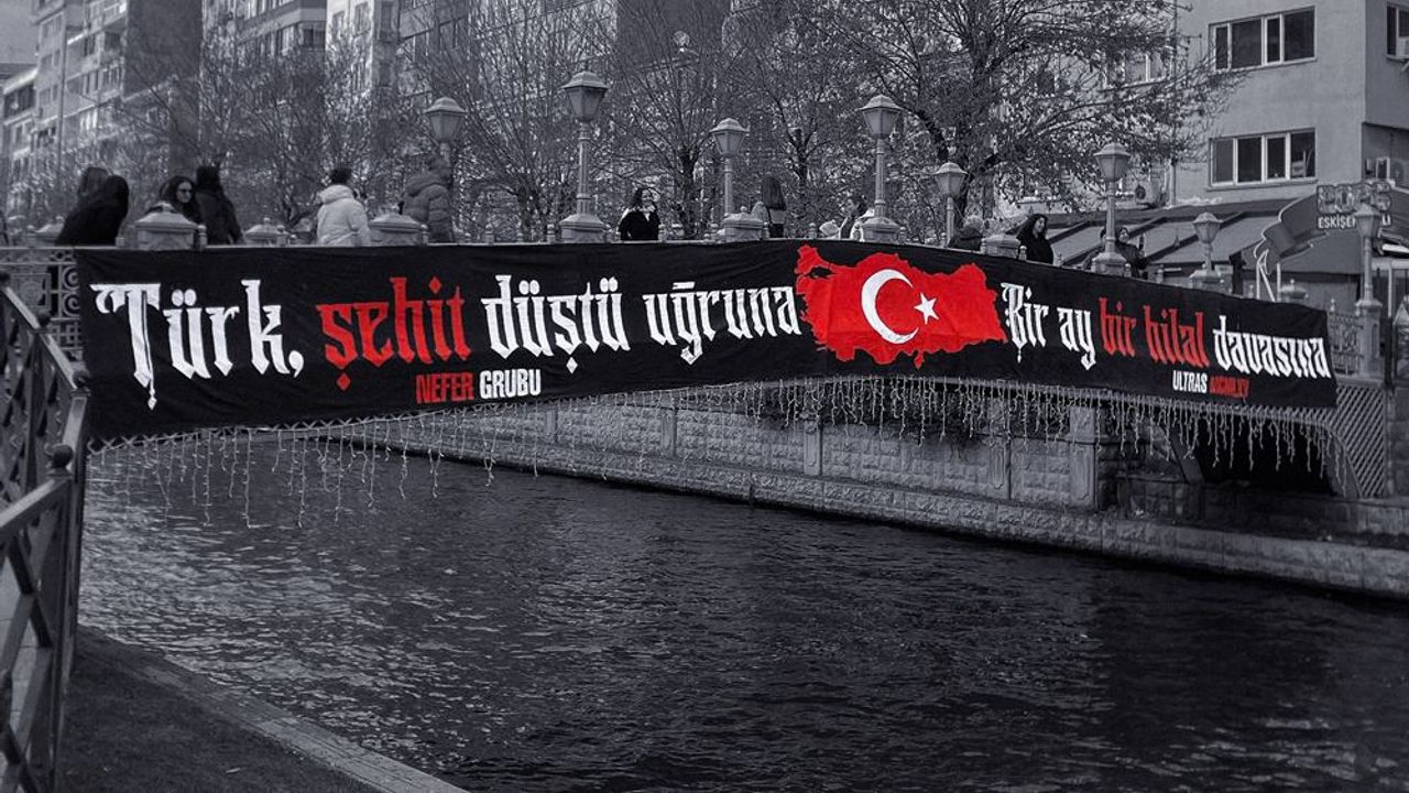 Eskişehir’de Eskişehirspor’un taraftar gruplarından Nefer, kent Adalar bölgesinde bulunan bir köprüye pankart astı. Köprüye asılan pankartta, “Türk şehit düştü, bir ay bir hilal davasına” ifadeleri yer aldı. Pankart, köprüden geçen vatandaşların dikkatini çekti.