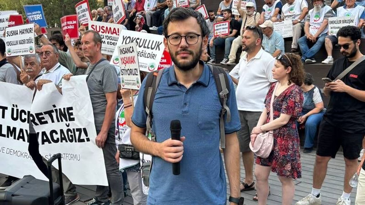 “Yürüyüş yapıyoruz. Ama yürüyüş yaptığımız pankartımız yırtık. Çünkü AK Parti standı önünde yürüyüşümüzü yaptığımız esnada, bu tek adam rejiminden güç alan soytarılar pankartımıza saldırdı. Geçmişten bugüne yaşadıkları sözde mağduriyetlerle timsah gözyaşı dökenlere karşı söylüyoruz. Saldırmak, sokak çetelerinin huyudur. Saldırmak, faşistlerin ve gericilerin huyudur. Direnmek ise emekçilerin, devrimcilerin, halkın huyudur. Biz direneceğiz, direneceğiz. Direne direne kazanacağız. Burada meydan okuyoruz. Mahkemeler onlarınsa, saraylar onlarınsa, büyük şirketler ve patronlar onlarınsa sokaklar bizim. Biz emekçileriz, gençleriz, kadınlarız ve söylüyoruz. Tek adam rejimine mutlaka son vereceğiz. Bu saldırılara asla diz çökmeyiz.”