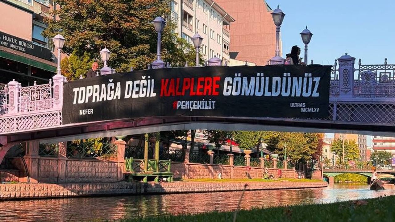 Eskişehir’de ise bu sessiz acıya dikkat çeken bir vefa örneği Eskişehirspor taraftarlarından geldi. Siyah Kırmızılı tribün grupları, kentin simgelerinden biri olan Porsuk Çayı üzerindeki bir köprüye, üzerinde “Toprağa değil kalplere gömüldünüz” yazılı bir pankart astı.